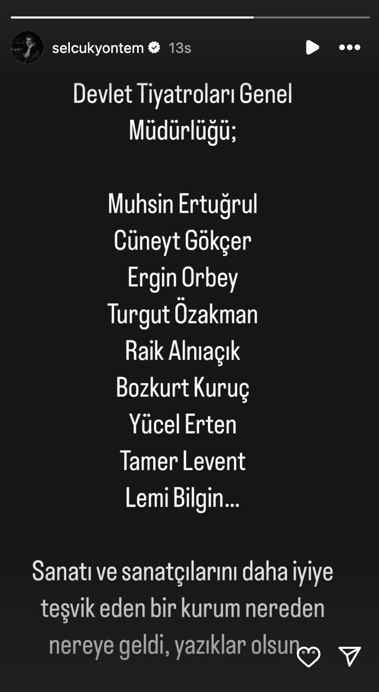 Yöntem’in bu paylaşımı, sosyal medyada büyük yankı uyandırdı. Birçok sanatçı ve tiyatro sever, Devlet Tiyatroları’nın geçmişteki rolüne ve bugünkü durumuna dair benzer eleştirilerde bulundu. Son dönemde tiyatro camiasındaki önemli isimler de bu tür paylaşımlarla mevcut durumu eleştiriyor.